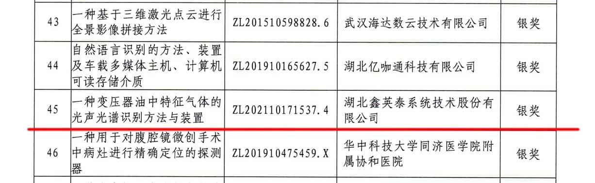 2022年1月18日,从湖北省知识产权局《关于公布第二届湖北省高价值专利大赛结果的通知》中接获喜讯,由9728太阳集团申报的发明专利“一种变压器油中特征气体的光声光谱识别方法与装置”获得第二届湖北省高价值专利大赛银奖。